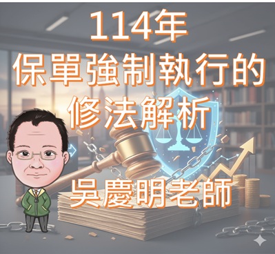 114年保單強制執行制度迎來重大修法,對保險業者、保戶及執行機關皆有深遠影響。本專題深入解析修法重點,釐清執行流程與法律責任,協助保險從業人員掌握最新規範,提升實務應對能力。